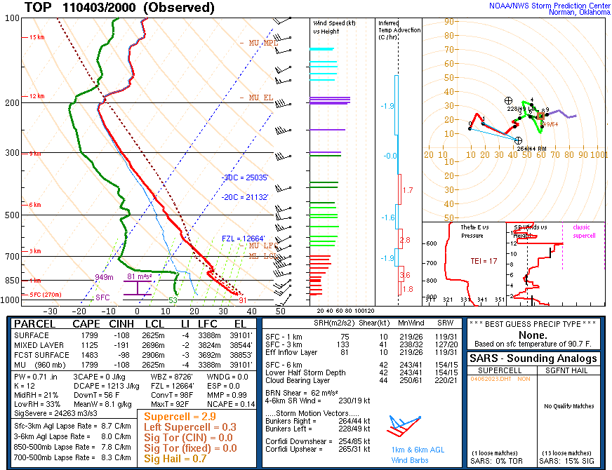 Fig 5 -- TOP sounding from 20Z, April 3, 2011.  From the SPC website.